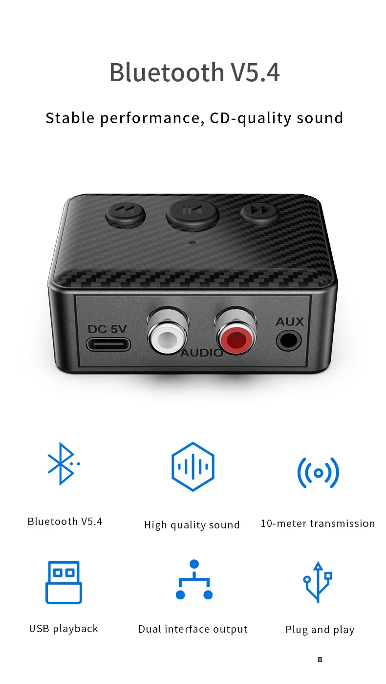 1. Convenient to use: Bluetooth Compatible 5.4 audio receiver, USB music player, wired audio second to Bluetooth Compatible audio.